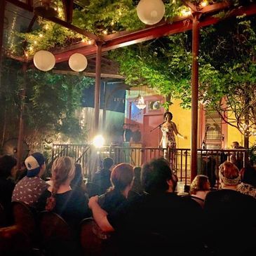 Since discovering Write About Now, one of Houston's many slam poetry communities, you can find Monica on this stage at least once a year, primarily during the summer while she teaches in the Creative Writing Camp. This stage is full of welcoming and loving people, and anyone looks good under the lights at Avant Garden.