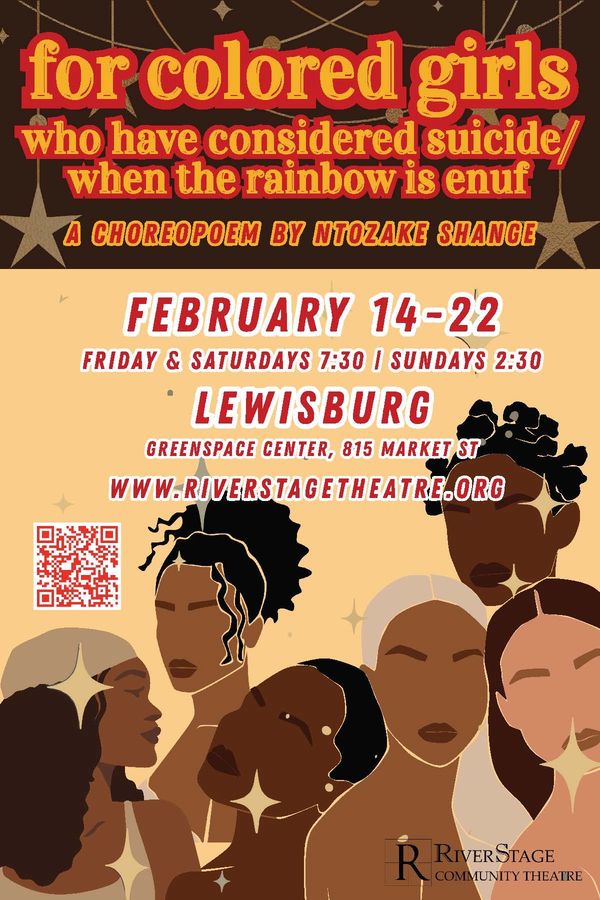 Come see for colored girls who have considered suicide / when the rainbow is enuf by Ntozake Shange and directed by Monica Prince at RiverStage Community Theatre!